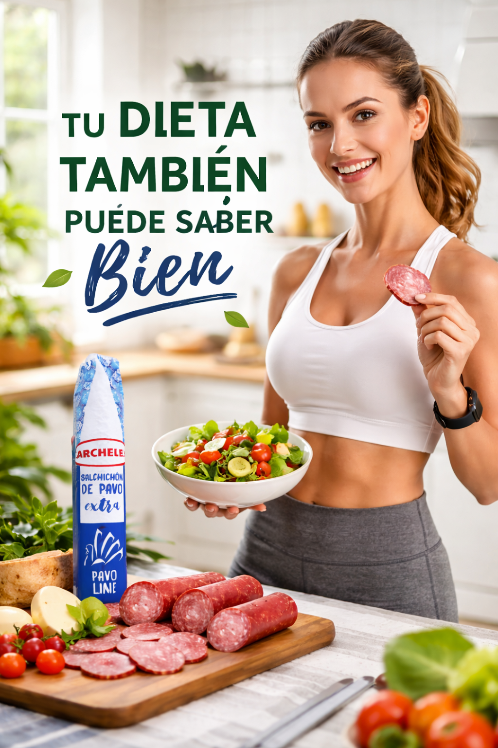 El Salchichón Extra Vela De Pavo «Halal» puede incluirse en dietas equilibradas gracias a su menor contenido en grasa y calorías. Es ideal para quienes buscan cuidarse sin eliminar los embutidos de su alimentación.